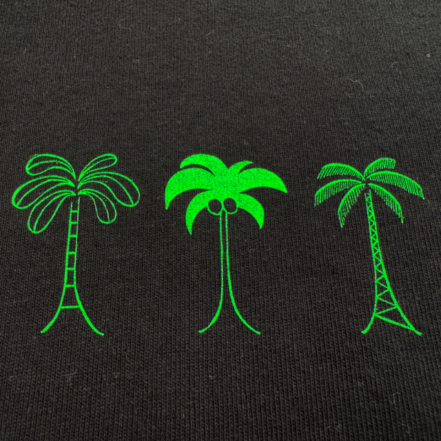 フロントとバックには、ココヤシをモチーフにしたオリジナルの手描きイラストをプリントしました。